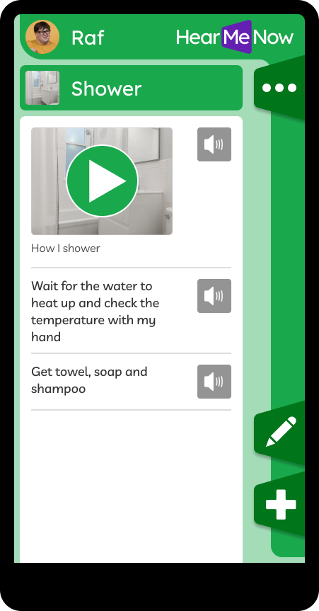 Hft staff support someone’s wishes for dignity and independence, using Hear Me Now to enable them to perform tasks on their own.